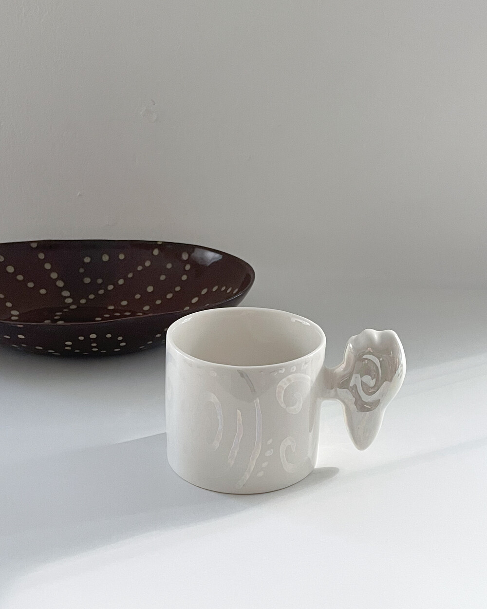 러스터의 무지갯빛이 잔잔하게 퍼지는 Spiral Heart 머그 두번째 입니다.